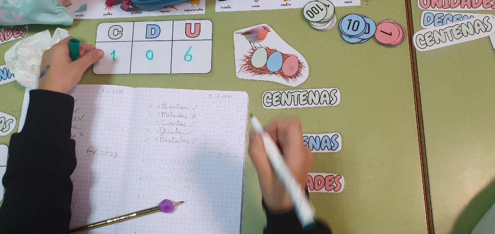 A descomposición numérica novembro 14, 2023 Obter ligazón Facebook X Pinterest Correo electrónico Outras aplicacións En segundo xa case somos expertos na descomposición numérica e hoxe tocou traballala, xa que estamos estudiando a flora e fauna, cun pequeno paporrubio e o seu niño cheo de ovos. Comentarios
